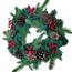Coronita decorativa artificiala pentru Craciun, cu conuri de brad si merisoare, 40 cm