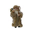 - Figurina îl reprezintă pe Moș Crăciun într-o ipostază maiestuoasă, îmbrăcat într-un costum de lux, în nuanțe aurii și crem. Această alegere cromatică conferă un aer regal și sofisticat, potrivit pentru un decor de Crăciun rafinat.