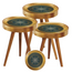 Set 3 Masute Cafea Marimi Diferite cu Blat Mandala Auriu cu Verde Oriental si Picioare din Lemn – Design Elegant si Luxos
