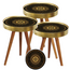 Set 3 Masute Cafea Marimi Diferite cu Blat Mandala Negru cu Auriu si Picioare din Lemn – Design Elegant si Luxos
