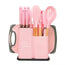 Set de 19 Ustensile de Bucătărie din Silicon cu Suport și Mânere din Lemn – Funcționalitate și Eleganță în Bucătăria Ta